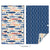 Bring a splash of coastal style to your kitchen with the School of Fish Reversible Microfiber Kitchen Towel by Werkshoppe. This towel features a modern, maritime-inspired design: one side showcases a vibrant pattern of stylized fish in shades of blue, coral, and cream, while the reverse side features an abstract, wave-like pattern of blue and white dots and stripes.