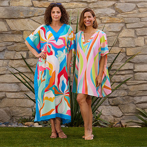 Elevate your beach and poolside style with WerkShoppe’s collection of beautifully designed caftan cover-ups. Crafted from lightweight, breathable, post-consumer recycled materials, our caftans offer the perfect blend of comfort and effortless elegance. Whether you're lounging by the water, strolling along the shore, or heading to a resort getaway, these versatile pieces provide stylish coverage while keeping you cool. Featuring unique, art-inspired prints, and pockets for all your summer essentials, each design is a wearable masterpiece that adds a touch of creativity to your wardrobe. Don't forget to mix and match with a Go Big Towel and large beach tote! Or try our halftan collection for all of the comfort with half of the length! Shop now and discover the perfect statement piece for your next sunny escape.
